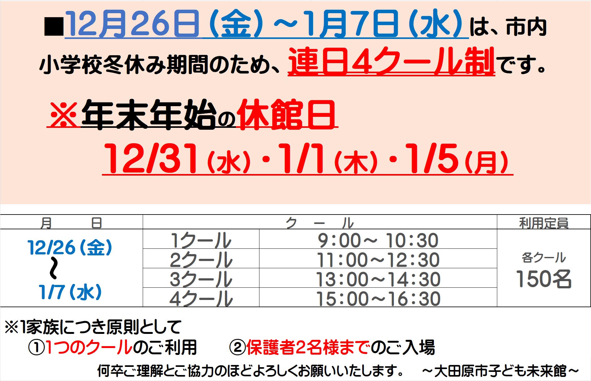 【年末年始の営業時間のお知らせ】