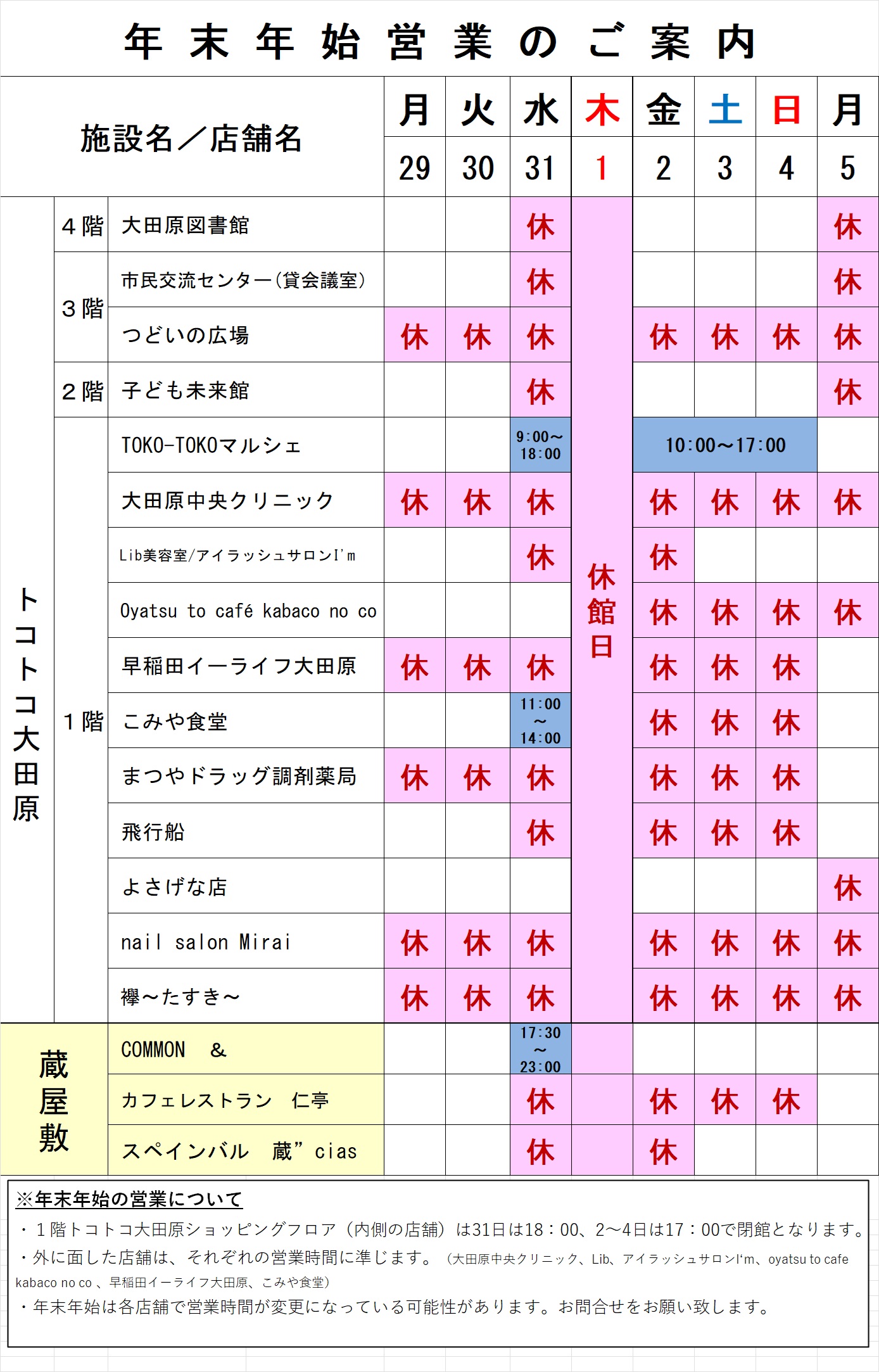 【年末年始の営業時間のお知らせ】